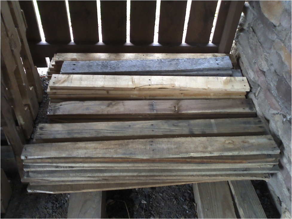 The first one took me about an hour to dismantle. I managed to get the process down to a science by the fourth one which took only 20 minutes. The sixth one took longer because my wimpy arms just gave out on me! I’ll build up some endurance eventually. I have a lot of pallets to go through…