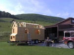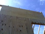 2.5 hours worked today, so this will be pretty short. We found a small mistake made yesterday around the triangles so we cut out the trusses, trimmed them, and put them back in place. It looked fine yesterday because sometimes it’s difficult to visualize how the next piece of the puzzle fits with the current one. Luckily it was a quick fix! Next we put plywood up on the dormers and cut out space for the windows. You can really see now where I opted to not put in one of the windows…looks a little like a cyclops but I am still confident in my decision.