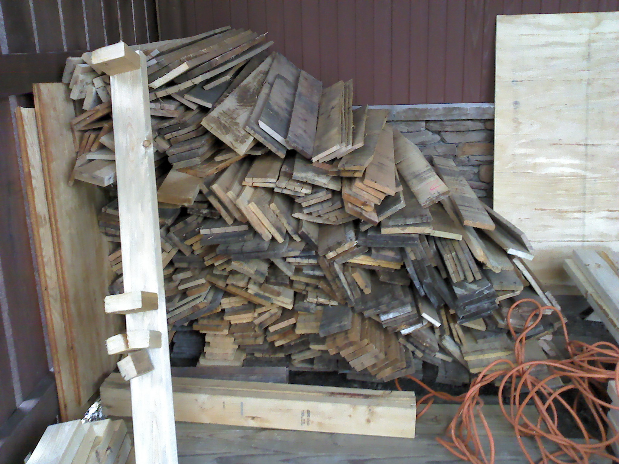 I’m also still going on my pallet pile. Soon I’ll need to figure out where I am going to use pallets on the walls, combine the calculation with my floor dimensions, and then see how many more pieces I need. I suspect almost double the pile I currently have. 😦