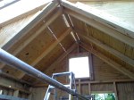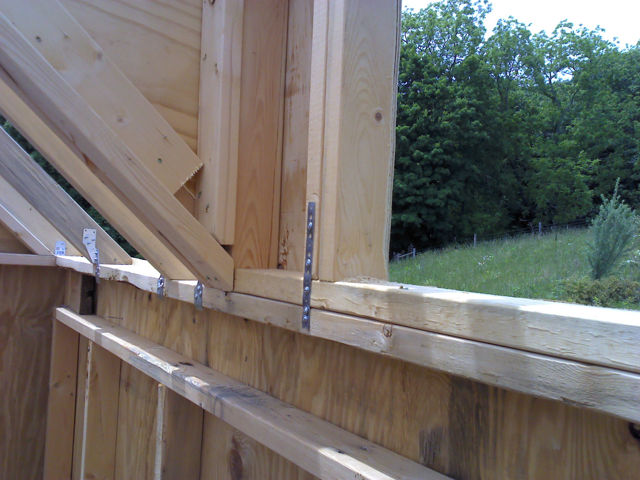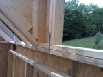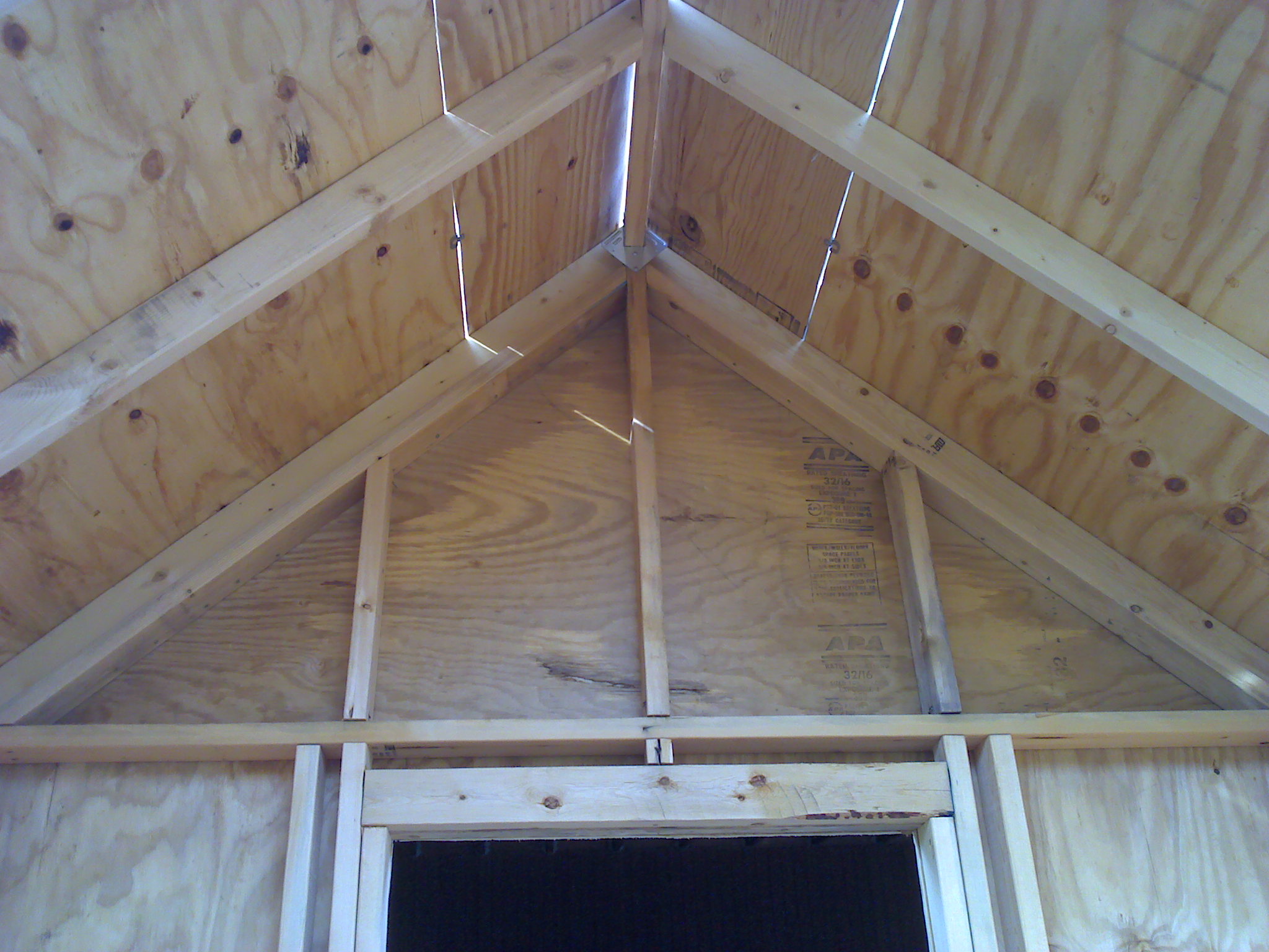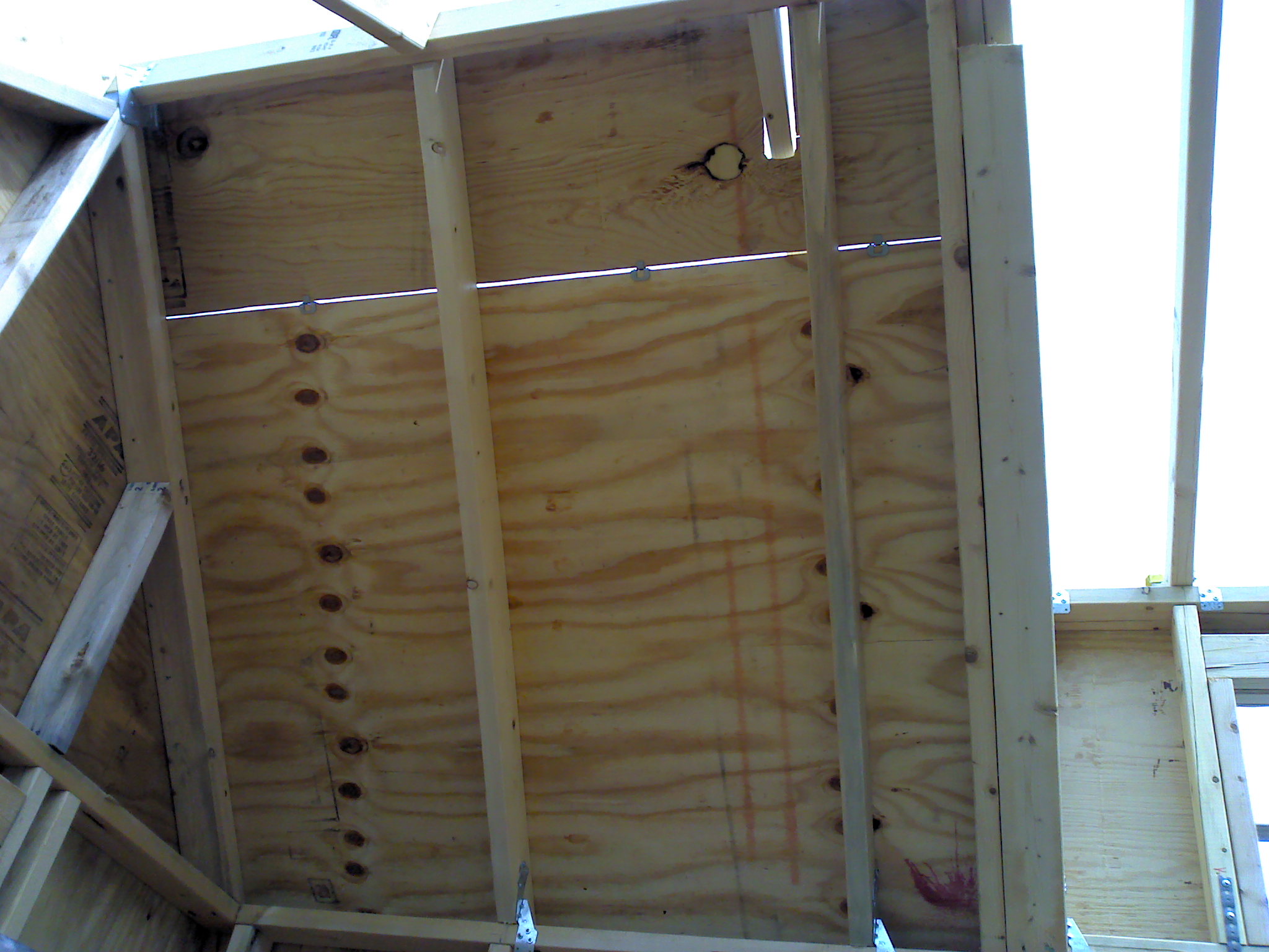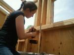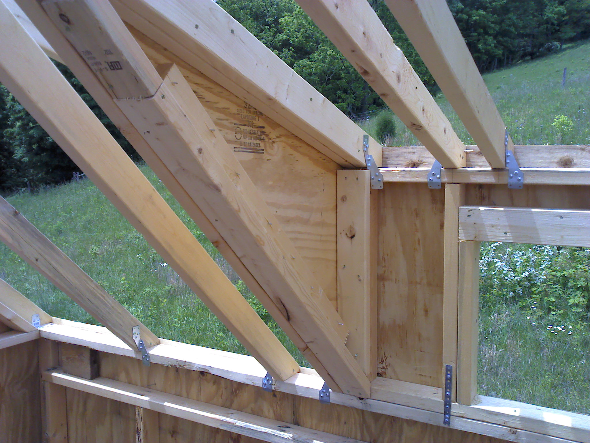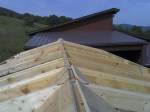 Once that was done, we cut the plywood to size and nailed it on the end sections of the roof. Luckily the first piece just needed a little trimming and we were able to use some leftover pieces from the walls for the smaller bits that needed to go closer to the peak. I probably get a little too giddy whenever I see us using pieces that would have otherwise gone into the burn pile, but hey, why else would I be studying environmental sustainability if I didn’t get into this stuff? The various sections of plywood needed some clips to add strength wherever they didn’t meet the trusses. It’s pretty amazing how much sturdier it felt with just those small metal clips. I’m learning that there are a lot of seemingly insignificant items or methods to building that make a big difference on the finished product. Duh.