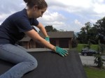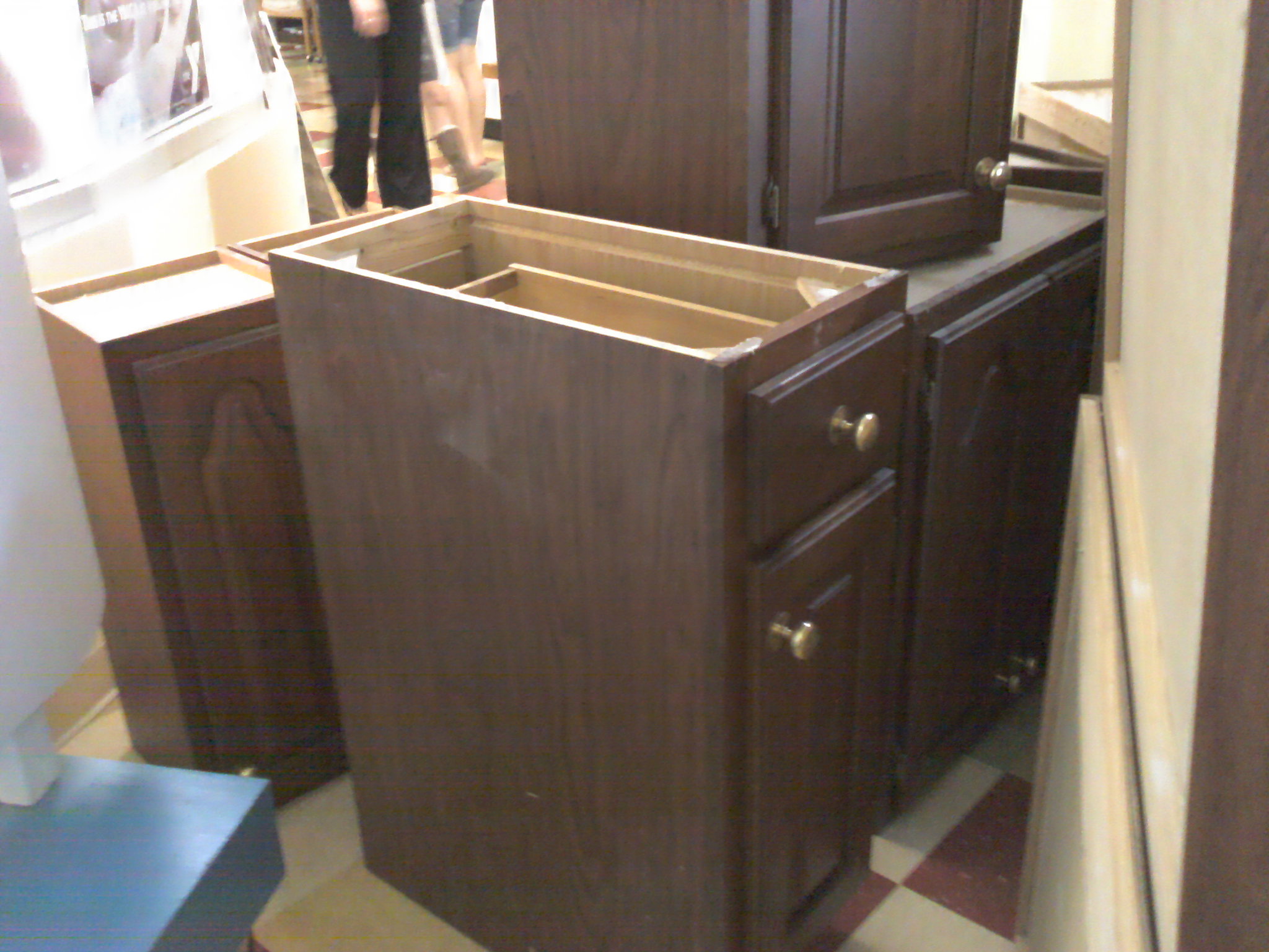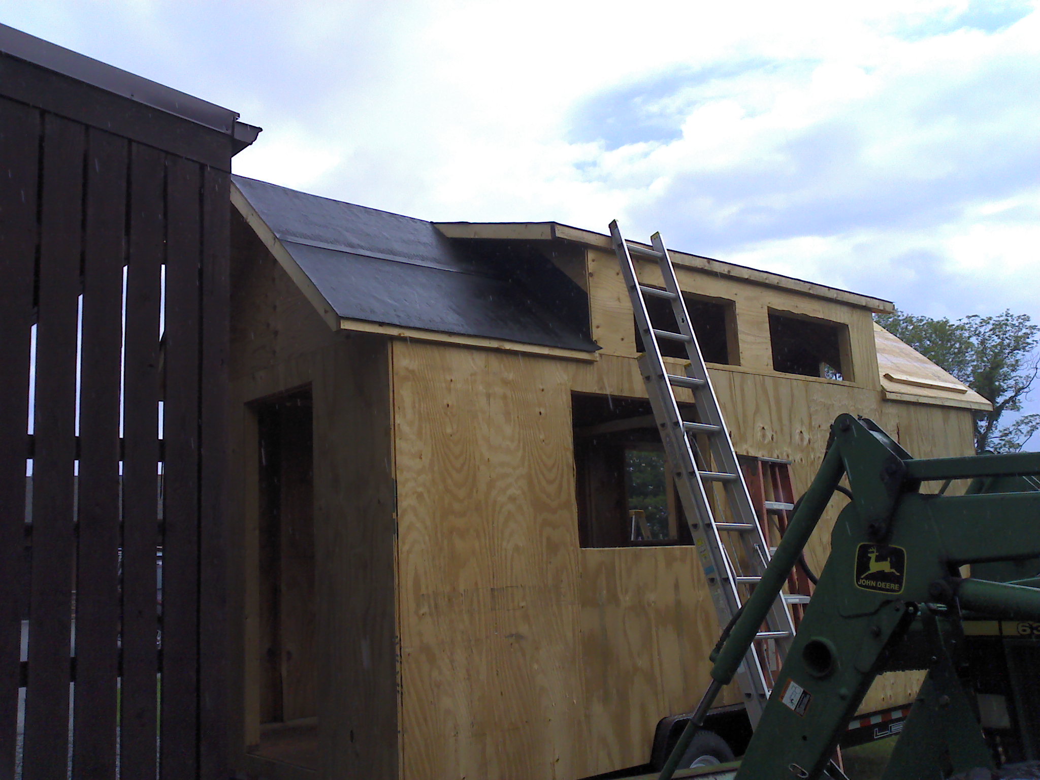 Another rainy day on the 23rd!  Progress has been slow lately because of the weather.  We put roofing paper on just one section of the A frame part of the roof and picked up some kitchen cabinets from the YMCA thrift store.  They’re in great shape and I was able to buy them individually (most places sell them as an entire set, which is about 3 times as many cabinets as this tiny house needs!)  I also found a quirky cabinet that will be good for the bathroom.