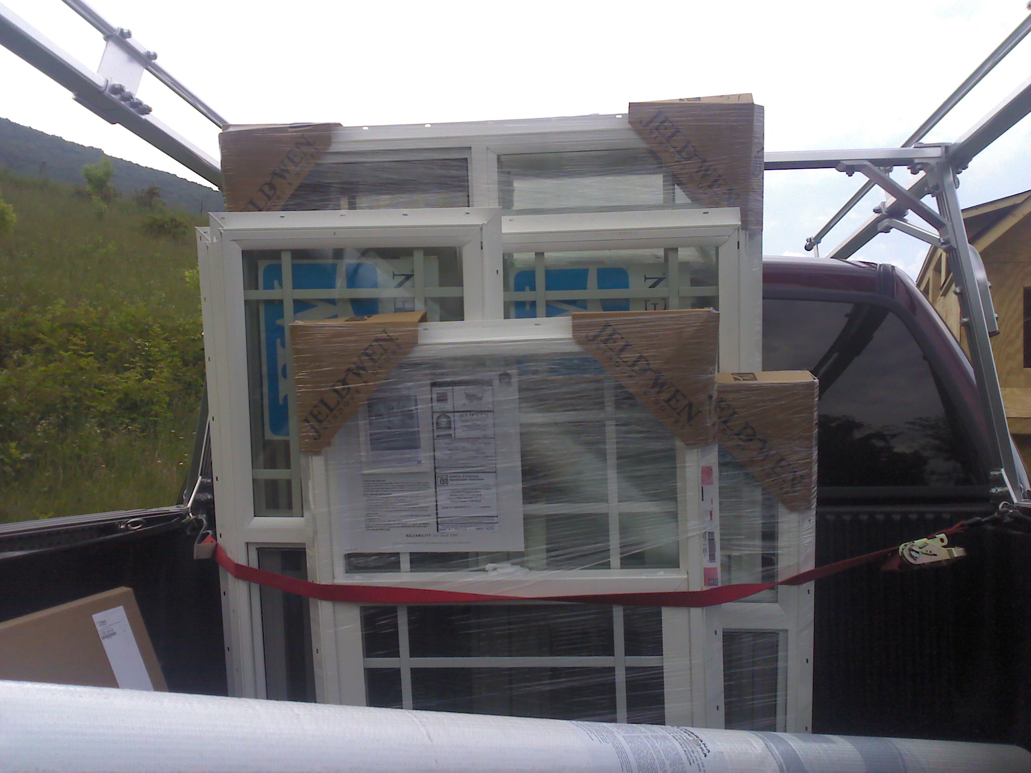 The 24th was way more productive.  We finished up the paper and picked up the windows.  I took a risk going with prairie style grills but I’m happy with the character it gives.  Unfortunately, they’re new windows but they’re all energy efficient and the loft window was made in Rocky Mount, VA.  I think the others came from Ohio?  I’ll check on that again, but hey, Ohio is closer than getting windows from the other side of the country!  I spent a lot of time looking for used windows but I wanted quality and efficiency…and I don’t have 6 months to look for the perfect used windows.  Tomorrow we get to put up the house wrap which will really make it look different!  So excited 🙂